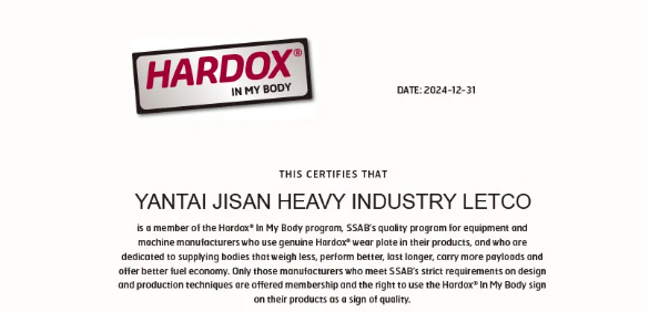 金山重工獲得瑞典Hardox鋼板授權資格企業(yè)